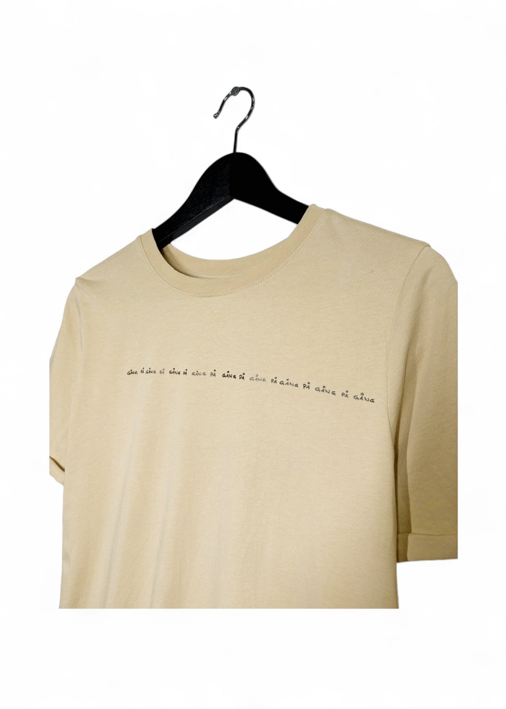 Stilren t-shirt i klassisk passform. Rund halsringning och kort ärm. Second hand. Tryck: gång på gång på gång...